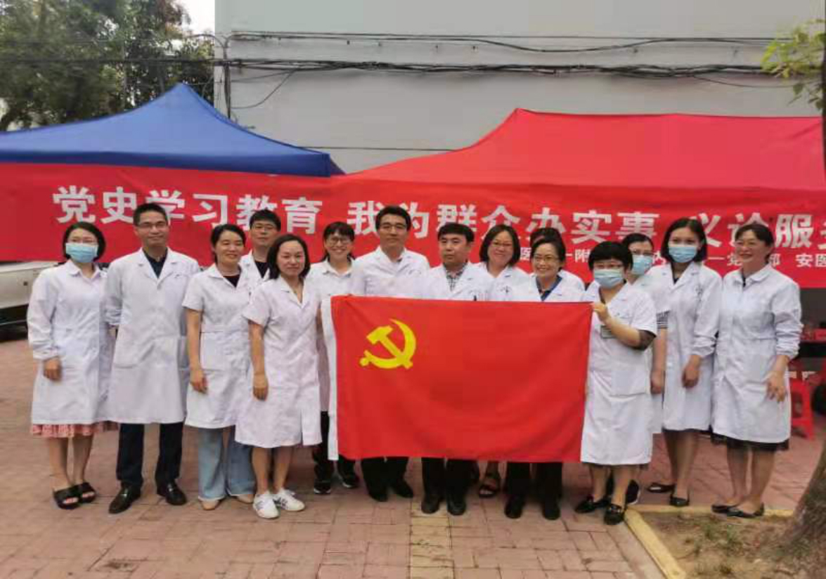 此次活动两支部联合组织神经内科、消化内科、心血管内科、内分泌等多学科专家、护理、药学共15位专家,在党支部书记尹长林、葛朝亮的带领下,前往西园街道岳西新村五安家园小区,开展“学党史,我为群众办实事”社区义诊活动。针对社区的老年人口多特点,两支部有针对性地开展了心脑血管疾病、内分泌及消化系统疾病常见病、多发病的健康保健、疾病预防和治疗知识、合理用药科普咨询等健康宣教。专家们不畏酷暑,耐心解答居民问题,参与活动的居民络绎不绝,现场共接待了百余位居民,受到了社区居民的一致认可,以实际行动践行“学党史,我为群众办实事”,庆祝建党100周年。