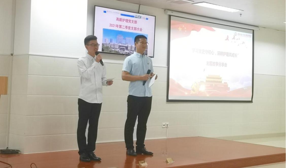 为贯彻落实医院及院区相关党史学习教育文件,检验党史学习效果,更好地开展党史学习教育,结合支部实际,6月25日晚,高新护理党支部在消化内镜中心会议室组织召开“学习党史守初心,深耕护理共成长”党史学习主题故事分享会,支部宣传委员胡雨航和年轻党员代表黄状状主持,全体党员、入党积极分子及支部所辖科室部分群众共70余人参加。