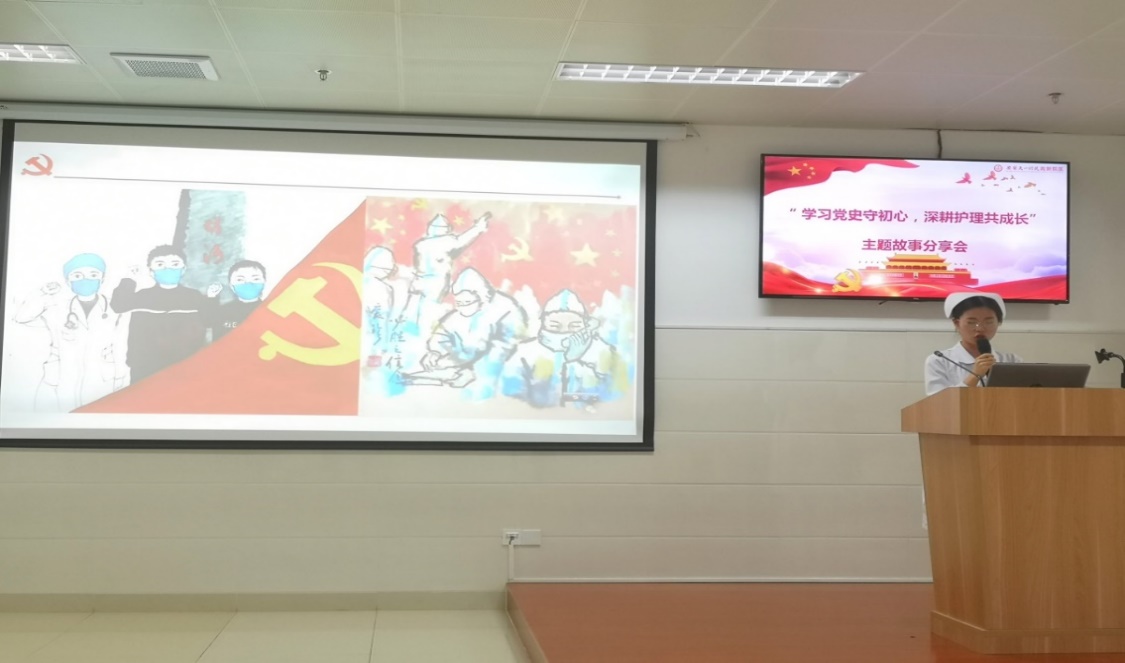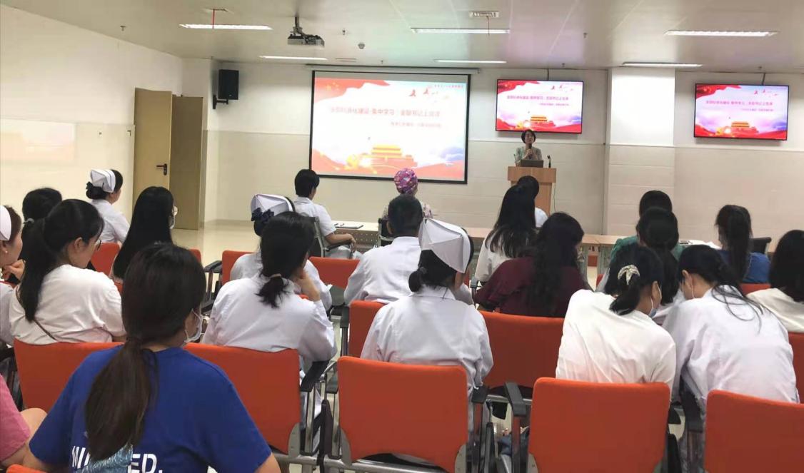 最后,支部书记韩江英部署了有关党史学习教育的相关推进事宜,并开展了《传承红色基因,创新发展护理》的主题党课学习。