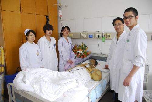由于事发突然,郭先生当时装有证明其身份证件、钱物的手提箱被落在了三院,是名副其实的“三无”人员(无资金、无证件、无陪护),然而生命却在分分秒秒的流逝,医院医护人员当机立断,为他开辟了生命绿色通道,争分夺秒的组织了专家对其进行会诊治疗。值班老总迅速联系医务处及总值班调来血浆,在最危险的那两天医护人员24小时监护,经过一周多的救治,郭先生平安度过了难关,生命体征接近平稳。