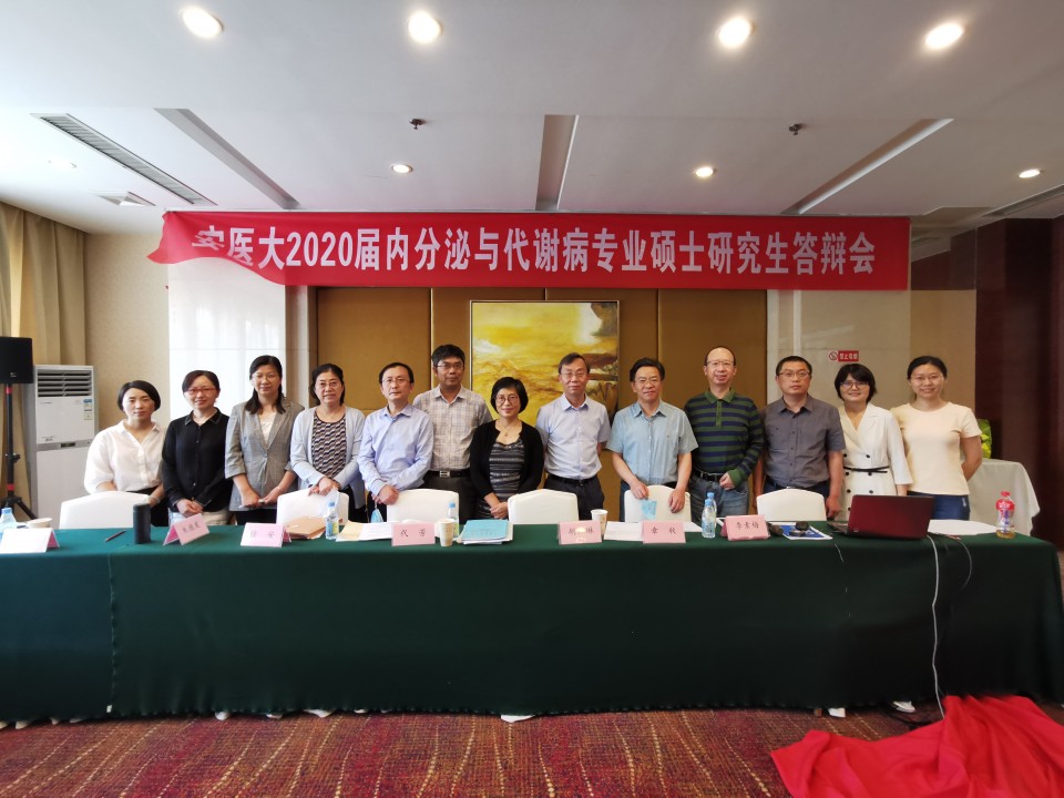 为进一步落实学校疫情防控工作的总体要求,确保疫情期间硕士研究生学位论文答辩工作顺利开展,5月23日,安医大内分泌与代谢病学系在梅山饭店组织了2020届内分泌与代谢病专业硕士研究生网络视频答辩。答辩会由我院内分泌科主任章秋教授主持,来自安医大一附院、安医大二附院、安徽省立医院共27名研究生参与答辩。学系主委章秋,副主委叶山东、潘天荣,常委王佑民、左春林、代芳、朱德发、陈超、胡红琳,委员陈明卫、邓大同以及来自弋矶山医院高家林、安中医第一附属医院方朝晖、省立医院任安和邢学农作为答辩专家参与答辩。
