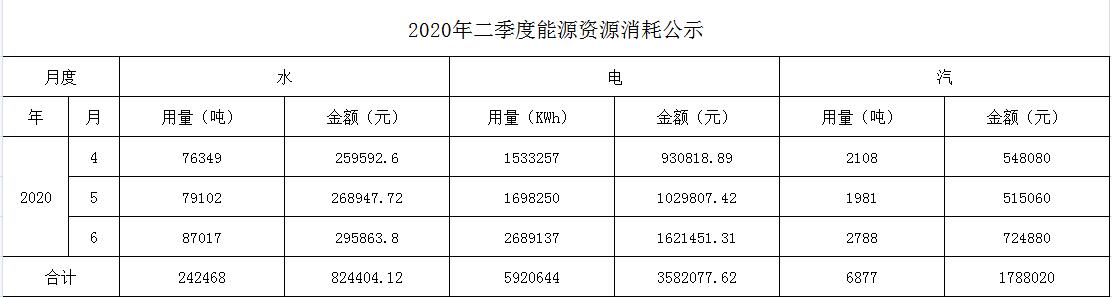 2020年二季度能源资源消耗公示