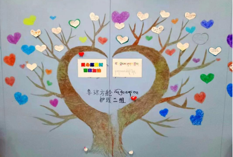 初到海拔3600多米的高原上,队员们不同程度出现了不适,大家互相关心,互相鼓励。当晚便开始投入紧张的培训工作中。8月28日鲁琼方舱医院顺利开舱,我院9名护理队员分为3个组随总队11个组进行排班。因方舱缺乏工勤人员和保洁人员,护理队员们在方舱不仅要完成承担患者的基础护理,生命体征测量,出入院管理,还要负责舱内外的清洁消毒、院感防控、垃圾清理、物资发放等工作,虽然体力透支、交叉感染的风险增加,但所有队员们本着“缺氧不缺精神”的理念,发扬艰苦奋斗精神,在方舱内都充分履行责任护士与感控人员的双重职责,积极开展各项特色活动,充分展示我院队员风采。