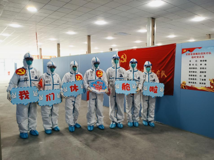 院感工作作为此次抗疫工作的基石,自是重中之重。我院队员王愿愿为方舱院感防控组副组长,施艳群作为感控组成员,前期参与方舱医院布局区域的划分,参与制定院感制度14项、工作流程9项、应急预案5项,完善了10余项院感防控岗位职责。对所有援藏队员及后勤保障人员进行穿脱防护用具培训以及院感知识培训,每日通过监控监督队员不合要求的行为,并予以指正。副组长王愿愿在观察了众多队员脱卸防护服后,提出一种避免污染面部的创新脱卸防护服方法,拍摄教学视频供全队队员学习,受到总队领队一致好评;施艳群在一次巡视核酸采集时,一位采集护理老师突然出现胸闷、乏力,她立即接替完成剩下工作。“院感看的不是最好成绩,而是最差成绩”,这是他们常挂在嘴边的一句话。