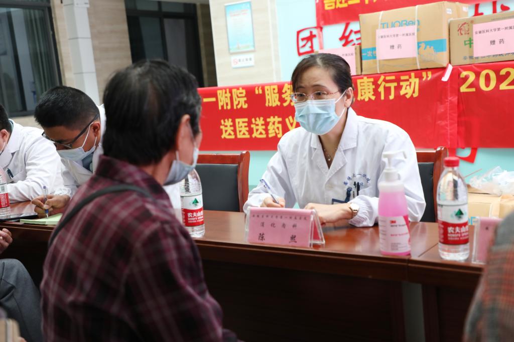 随后,致公党安医大基层委主委、消化内科主任陈熙,消化内科陈刚、消化内科刁磊、神经内科周霞、皮肤性病科丁延涛等我院专家在镇卫生院开展了“高新院区开诊五周年之百名专家送健康下基层”惠民义诊活动。专家们通过现场坐诊、健康咨询、疾病预防科普宣传、疫情防控指导等形式推动疾病防治、普及卫生健康知识。同时,我院向镇卫生院捐赠了价值一万余元的藿香正气丸、连花清瘟胶囊等居家常备药品。