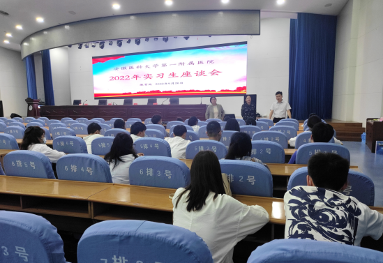 9月26日下午,医院在内科医技楼会议中心召开2022年国庆期间实习生安全生产大会。副院长吴晓莉、第一临床医学院学生工作部副部长孙民、教育处相关负责人和实习生代表参加会议。会议由教育处副处长王继年主持。