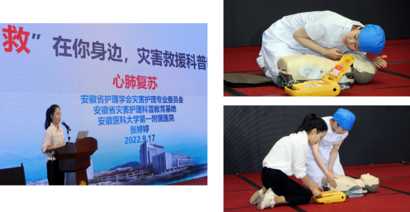 启动仪式结束,安徽省护理学会开展线上科普知识宣讲活动,我院作为安徽省灾害护理科普教育基地积极响应,开展了“救”在你身边--灾害救援科普活动。急诊医学科主管护师张婷婷和护师阮佳佳认真准备,结合活动主题和自身专业特点,精彩演讲如何正确启动应急反应系统及心肺复苏相关知识,现场演示心肺复苏技术和AED操作,线上时段访问量超过了1.66万人次,通俗易懂的讲解、规范的示教获得医护专家和广大群众的一致好评。