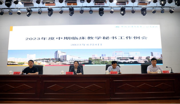 会上,陈光辉强调了现阶段规培生打卡的重要性,对如何提升临床教秘教学工作质量及加强规培生管理作了进一步解读。吴鹏伟指出临床教秘应在入科培训时融入学科历史及背景,平日多留意学生的心理状况,给予充分的关心关爱。王继年通报了2023年度中期实践教学检查结果,对各科室出现的共性问题作了简要分析,并且对新一批实习生带教做出进一步规范。