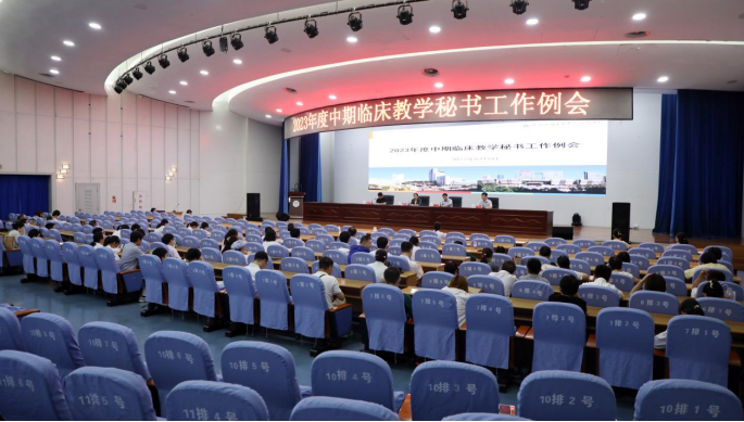 6月8日下午,医院在内科医技楼四楼会议中心召开2023年度中期临床教学秘书工作例会。副院长吴晓莉出席会议并讲话,毕业后教育处处长陈光辉、研究生工作部副部长吴鹏伟、教育处副处长王继年及2023年度全体临床教学秘书参加会议。会议由吴晓莉主持。