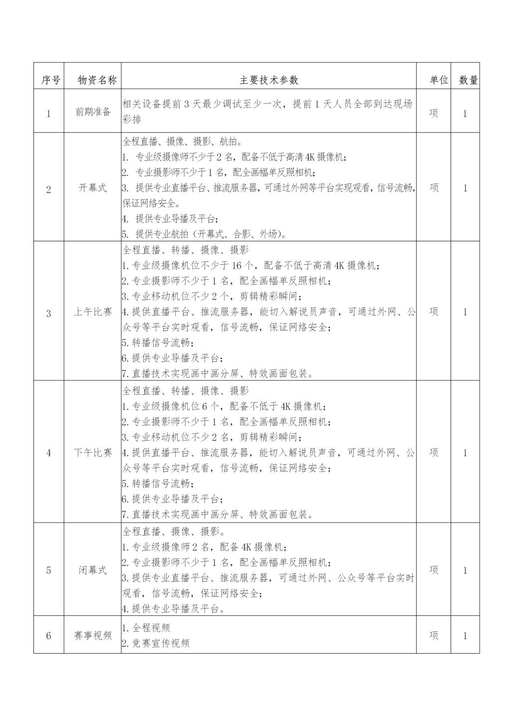 比赛现场录转播及直播服务项目的前期准备、开幕式、复赛、决赛、闭幕式、赛事视频速剪及其他服务。招标总金额不高于4.5万元。