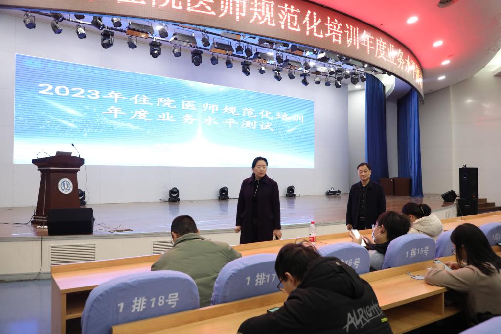 1月13日,医院在内科医技楼四楼会议中心组织2023年住院医师规范化培训(以下简称“住培”)年度业务水平测试工作,27个专业的438名住培医师参加考核。副院长吴晓莉巡查指导考核工作,毕业后教育处处长陈光辉等陪同。