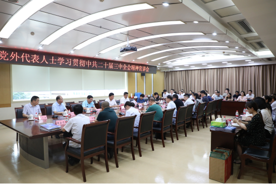 8月15日下午,在医院干部保健中心二楼会议室举办面向党外代表人士学习贯彻中共二十届三中全会精神宣讲会,省委统战部常务副部长张永受邀作全会精神宣讲。校党委书记王琦出席宣讲会并致辞,校党委副书记、院党委书记谢瑞瑾,校党委常委、统战部部长顾秀平,院党委副书记、副院长刘全礼参加宣讲会。宣讲会由谢瑞瑾主持。
