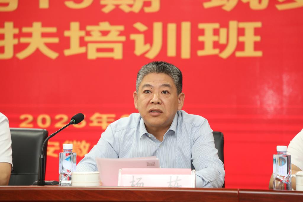 杨栋代表台盟中央,对学校和医院以及台盟安徽省总支的大力支持表示衷心感谢。他表示,近年来,安医大及一附院与台盟积极合作,坚持每年承办“筑梦医者”培训班,为帮扶地区提高医疗卫生水平,推进乡村振兴作出了积极贡献。本期培训班是落实台盟中央2025年“地域+领域”组团式帮扶毕节工作的重点项目,对于提高学员自身综合素质和业务技能水平大有帮助。他希望全体学员要提高政治站位,深刻领会培训意义;坚持学用结合,全面提升履职能力;严守纪律作风,展现良好精神风貌,将所学所悟转化为推动帮扶地区卫生健康事业高质量发展的强大动力,为乡村振兴注入更坚实的“健康力量”。