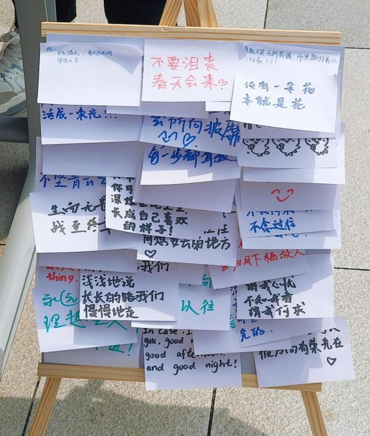 “5.25”心理健康日当天,“情绪交换盲盒”活动搭建起心灵共鸣的桥梁。同学们匿名书写心绪:将压力烦恼投入“收纳盒”,让焦虑得以安放;将快乐箴言放入“传递盒”,为他人点亮微光。