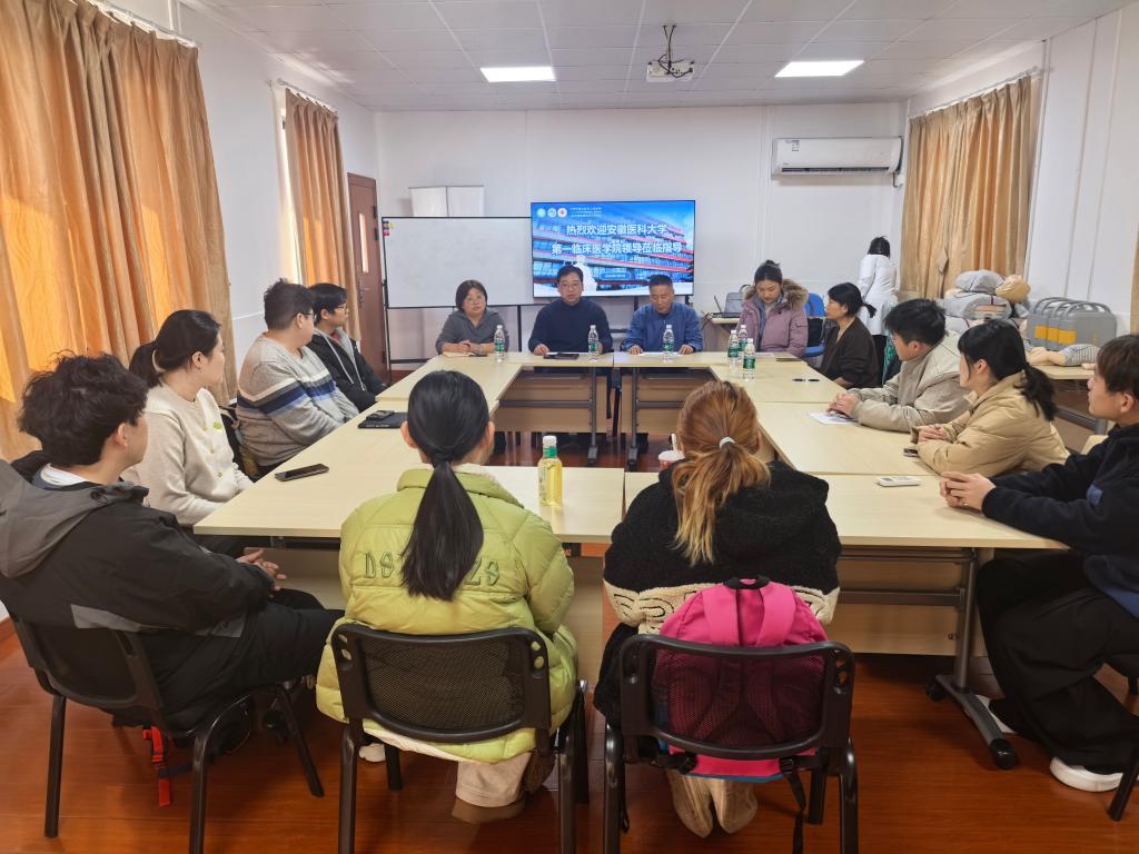 为切实传递学校与医院对实习生的关怀关爱,持续推进毕业生高质量就业工作,近日,院党委副书记李琮,本科生党总支书记、本科生工作部部长高晓妹分别带队,率领2026届毕业班辅导员,先后赴上海交通大学医学院附属仁济医院、中国医学科学院阜外医院、六安市人民医院等省内外多家实习单位,开展春节前实习生走访慰问活动。